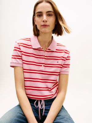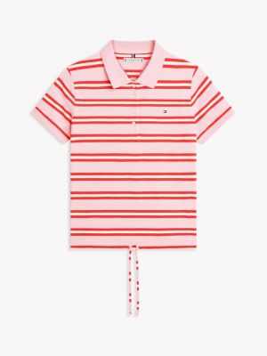 This classic polo shirt in stretch cotton pique features a striped design, further accented by self-tie detailing on the hem.