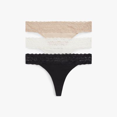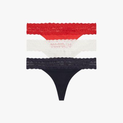 Add a luxuriously feminine design to your underwear drawer with this 3-pack of tanga thongs, featuring delicate ditsy floral lace waistbands.