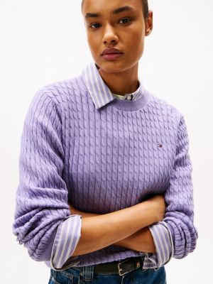 This cosy jumper is knitted from pure cotton and features a fine gauge cable design for a gently textured finish.