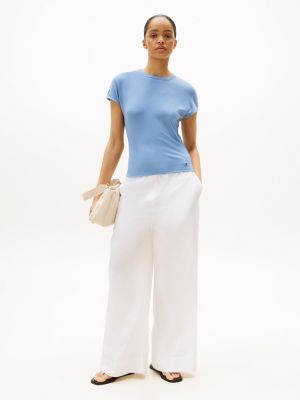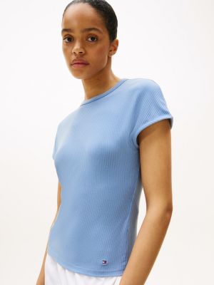 The high crew neck and capped sleeves of this slim-fitting, ribbed T-shirt put a more sophisticated spin on an everyday essential.