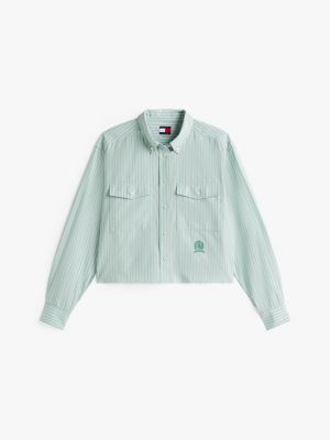Upgrade your everyday style with this varsity-inspired pure cotton shirt, made in a relaxed fit and to a modern cropped silhouette.