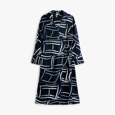 A flattering wrap detail, flag-embossed buttons and gold-tone hardware add an elevated edge to this relaxed-fit midi dress.