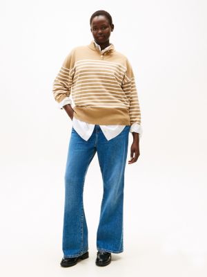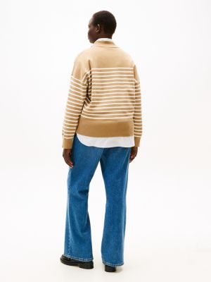 Timeless stripes and gold-tone buttons on the neckline combine to give this pure combed cotton jumper an elevated look.