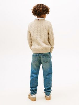 The cable-knit design adds a nautical vibe to this cosy pure combed cotton jumper, perfect for when days get a little chilly.