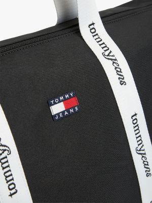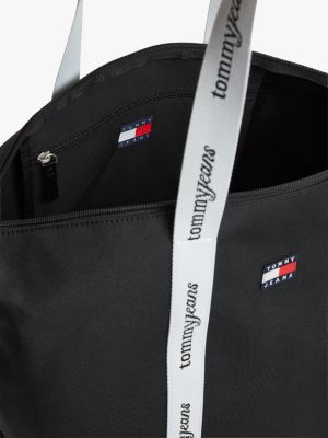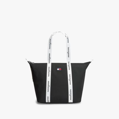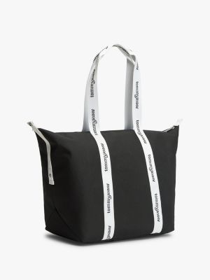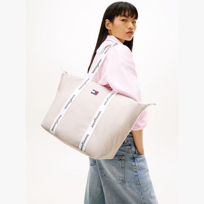 This roomy tote bag with repeat logo top handles features helpful side straps so you can adjust the shape.