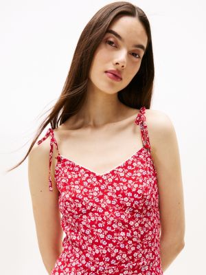 This summer-ready mini dress is cut to an extra-slim fit with a flared skirt and features playful self-tie straps on the neck.