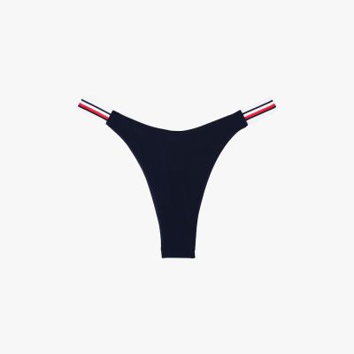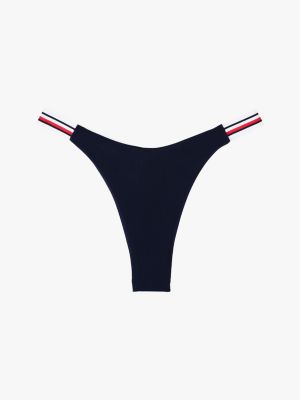 These bikini bottoms combine a cheeky back with a high-cut leg to create an alluring silhouette that elongates your figure.