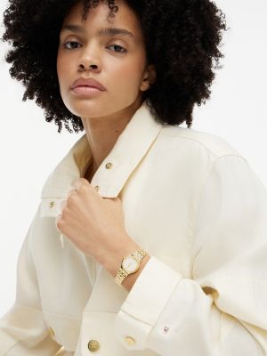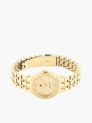 Bring a refined touch to your wrist with this watch, which pairs a polished gold-plated chain-link strap with a shimmering frosted dial.