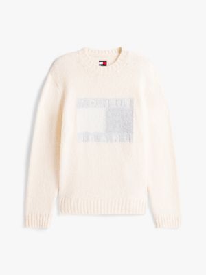 This cosy alpaca-blend jumper combines a classic crew-neck silhouette with a flag badge on the front, created using both intarsia and embroidery.