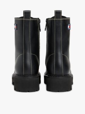 Bring a grungy edge to outfits with these lace-up leather boots, featuring modern cleated soles and zip closures for easy wear.