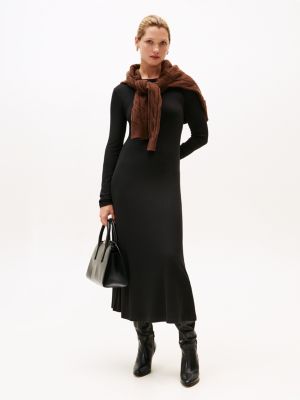 A ribbed finish to the fabric brings texture and flexibility to this midi dress in an endlessly flattering fit-and-flare silhouette.