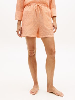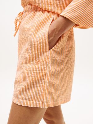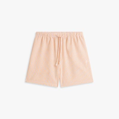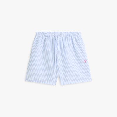These elasticated drawstring shorts are ideal for pulling on over swimwear, made from seersucker fabric with logo embroidery on the thigh.