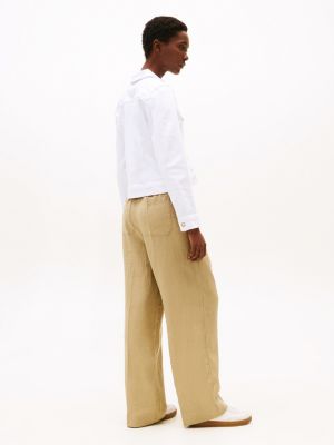 Bring a fresh feel to your denim collection with this white trucker jacket, cut in a feminine slim fit with branded buttons.
