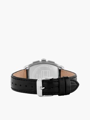 Refine your smart-casual look with this eye-catching watch, which blends a classic leather strap with a matching black square dial.