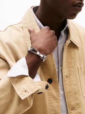 Enliven your accessories collection with this chain-link bracelet, detailed with knurling on select links for an intricate finish.