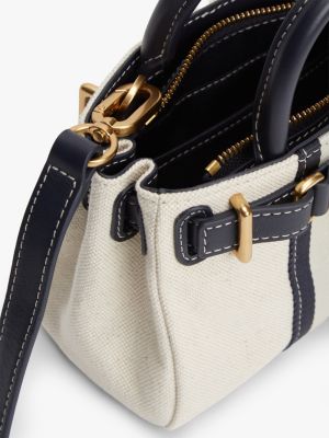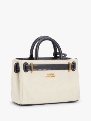 For a fresh look with heritage-inspired vibes, this tote bag reworks a classic in cotton linen canvas, with leather and hardware details.