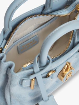 Executed in soft and supple suede with glistening hardware, this tote bag will complete any look with timeless elegance.