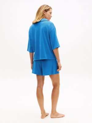 Cover up in retro-inspired style with this short-sleeved shirt, crafted from cotton-blend towelling fabric for a nostalgic '70s feel.