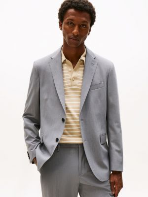 For traditional smart with modern comfort, this two-piece suit has been cut from a sleek stretch twill that's enriched with luxurious wool.