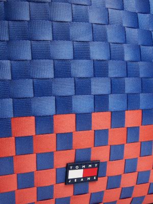 This tote bag featuring rubberised branding is woven in a check pattern to add a playful pop of colour to everyday ensembles.